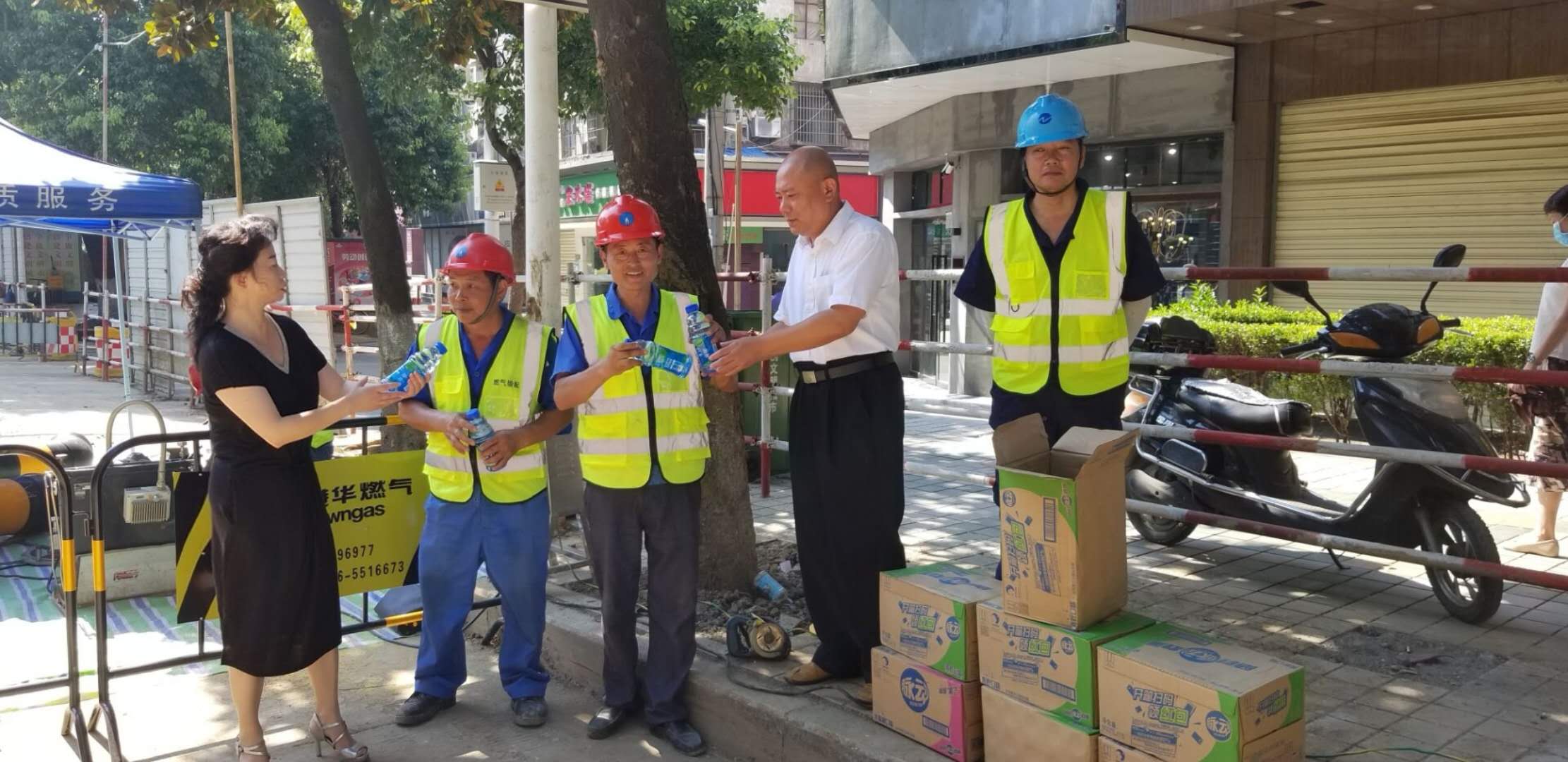 20日上午,公司工會(huì)主席孫曉偉、紀(jì)委書(shū)記方曉紅帶領(lǐng)黨委辦公室同志分別到孝肅路燃?xì)忤T鐵管工程改造現(xiàn)場(chǎng)、宜城路管網(wǎng)巡線(xiàn)工地以及石化菱北天然氣置換現(xiàn)場(chǎng)開(kāi)展“送清涼”活動(dòng),慰問(wèn)炎炎夏日?qǐng)?jiān)守在戶(hù)外工作崗位的員工。這是今年高溫天氣以來(lái),公司黨委班子第二次為奮戰(zhàn)在一線(xiàn)的員工送去清涼。