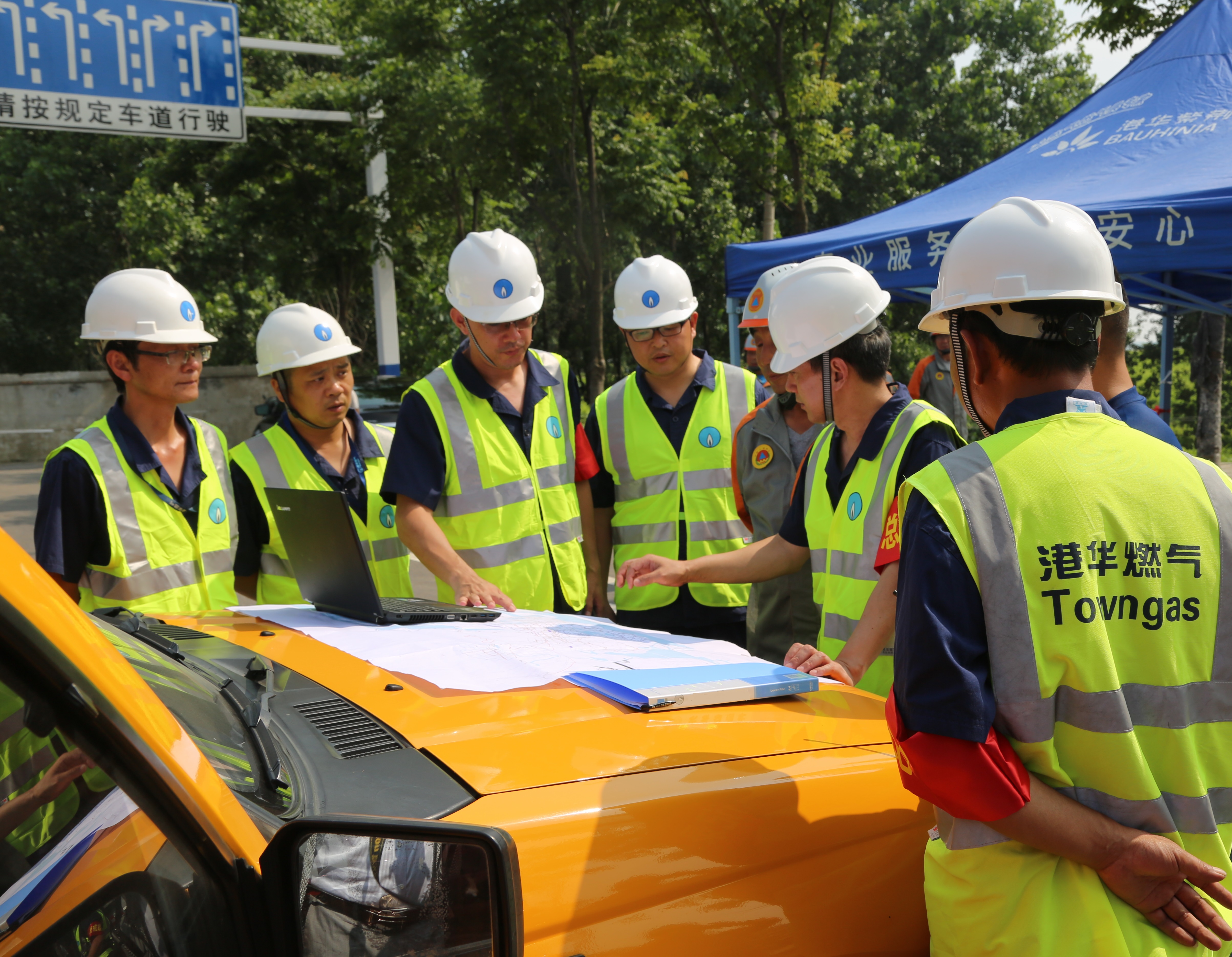 15時演習正式開始,接到報警后,消防、交警、港華及人防搶險人員于10分鐘內先后趕至現(xiàn)場,消防人員立即對泄漏區(qū)域進行滅火及水霧稀釋。交警人員對泄漏區(qū)域路段進行交通封閉。市人防協(xié)同消防、交警、港華燃氣專業(yè)搶險隊設立現(xiàn)場聯(lián)合搶險指揮部,迅速組織人員對現(xiàn)場進行緊急疏散、警示警戒、交通導行、燃氣濃度檢測等一系列應急處置措施。在初步控制事發(fā)現(xiàn)場后,經(jīng)現(xiàn)場指揮部研判,決定關閉潛江路地下燃氣進氣閥門并使用防爆風機加速燃氣濃度的稀釋。經(jīng)過有效處置,現(xiàn)場的燃氣泄漏得到控制,周邊空氣中的燃氣濃度逐漸將為0%PPM。15時35分,搶修人員進入管道受損點,對受損的PE200燃氣管道進行修復。經(jīng)過24分鐘的緊張搶修作業(yè),成功完成管道修復。16時,指揮部下令打開燃氣地下管網(wǎng)進氣閥,恢復燃氣供應。16時05分,經(jīng)檢測修復點無燃氣數(shù)值,安慶港華迅速組織客服及市務部相關人員進行用戶端的恢復供氣。16時20分,演習圓滿結束,現(xiàn)場指揮部對演練進行指導點評,而后,參演人員快速恢復現(xiàn)場、有序撤離。