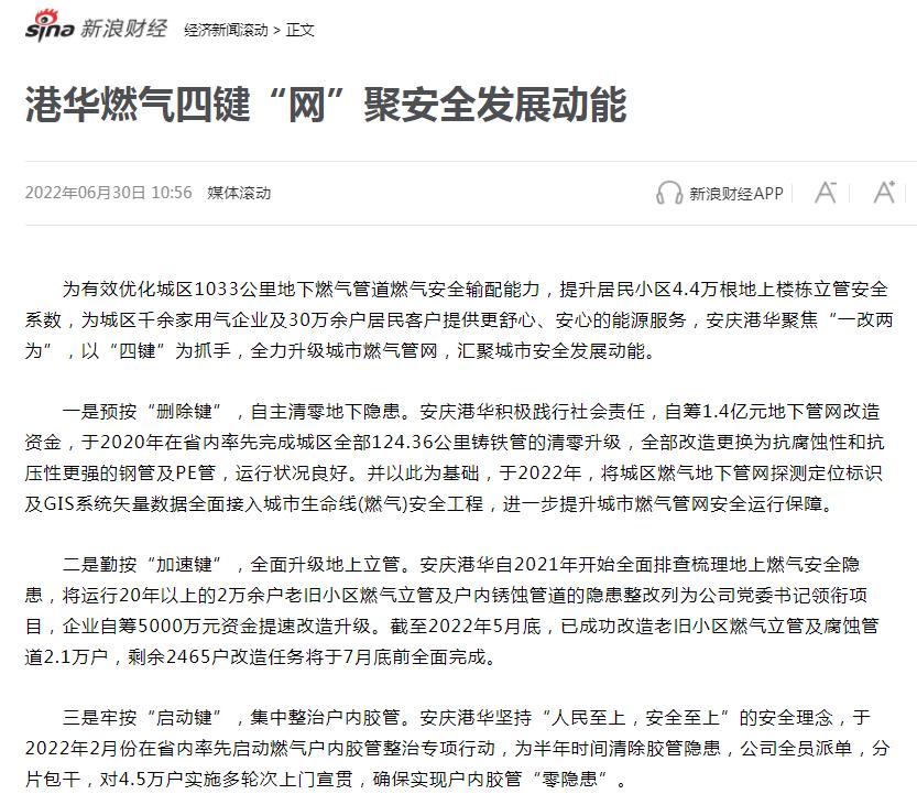 港華燃氣四鍵“網(wǎng)”聚安全發(fā)展動能(轉(zhuǎn)載于新浪財經(jīng))