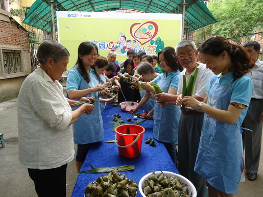 在活動現(xiàn)場,義工隊員們與社區(qū)工作人員一起,邊包愛心粽,邊與圍繞在周圍的社區(qū)老人們拉家?!,F(xiàn)場笑聲不斷、其樂融融,充滿溫情暖意?;顒又?,所用的包粽食材均采用低碳健康食材,旨在宣揚傳統(tǒng)裹粽文化的同時,積極推廣低碳的生活理念。300余只粽子在大家的努力下,兩個小時就全部包裹完畢。義工隊員們挨個將現(xiàn)場包好的愛心粽以及帶來的綠豆糕、鴨蛋等節(jié)日禮品贈與社區(qū)孤寡老人、獨居長者等有需要的社區(qū)弱勢群體手上,為他們送去安慶港華燃氣的貼心和關(guān)愛,送去節(jié)日的慰問和濃濃祝福。