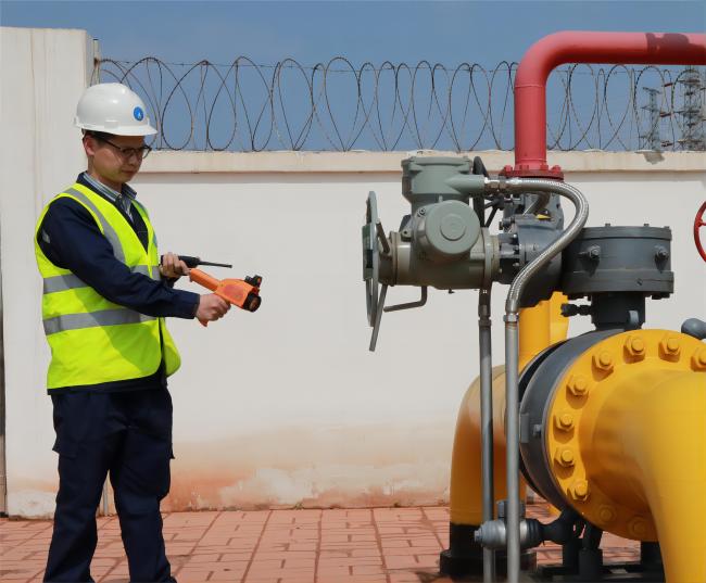 12時(shí)08分,置換作業(yè)開始。確定管道內(nèi)氣體成分比例符合要求后,置換組緩慢開啟1號(hào)閥門,向管網(wǎng)內(nèi)輸送天然氣,并由調(diào)度中心對(duì)管網(wǎng)內(nèi)壓力情況跟進(jìn)、監(jiān)測(cè)。正午時(shí)分,驕陽(yáng)似火,檢測(cè)人員們一邊吃著盒飯一邊堅(jiān)守施工現(xiàn)場(chǎng)觀測(cè)數(shù)據(jù)。終于,14時(shí)16分,現(xiàn)場(chǎng)調(diào)度的對(duì)講機(jī)內(nèi)傳來(lái)放散塔檢測(cè)人員的聲音:“經(jīng)檢測(cè),管網(wǎng)內(nèi)燃?xì)夂恳堰_(dá)99.7%,置換合格。”