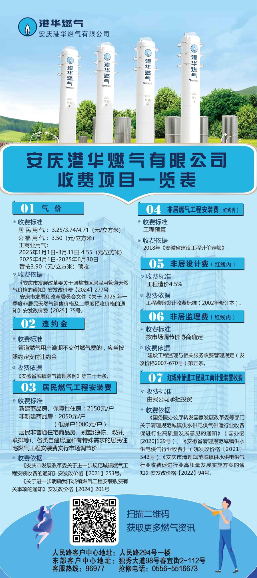 安慶港華燃?xì)庥邢薰臼召M(fèi)項(xiàng)目一覽表(2025) 發(fā)布時間:2025-05-08    閱讀次數(shù):2685次