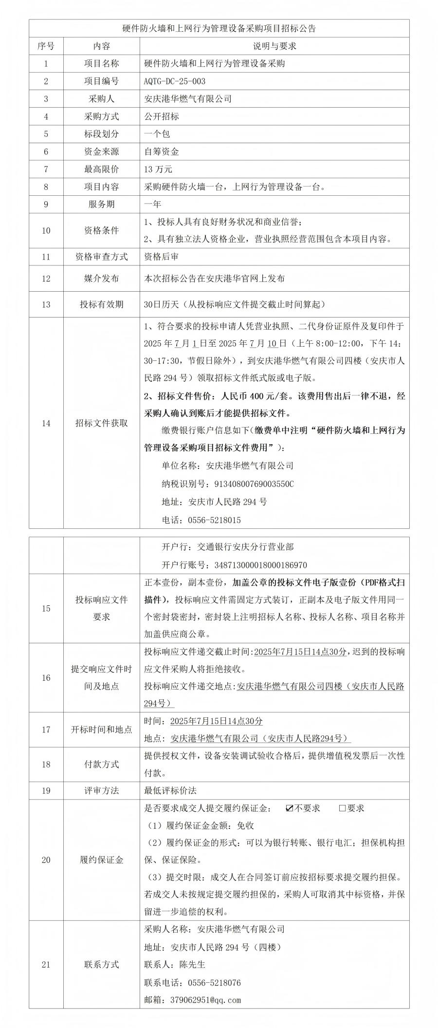 硬件防火墻和上網(wǎng)行為管理設(shè)備采購項(xiàng)目招標(biāo)公告