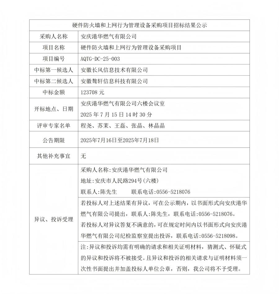 硬件防火墻和上網(wǎng)行為管理設(shè)備采購項目招標(biāo)結(jié)果公示