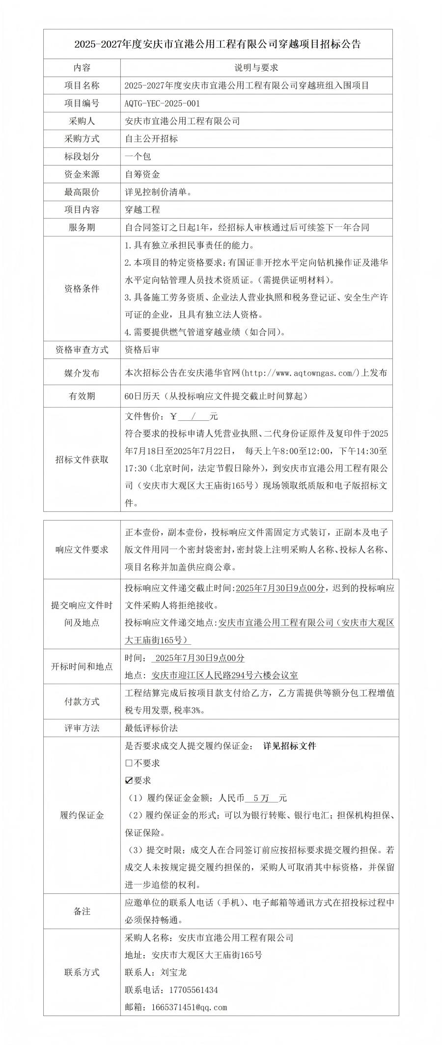 2025-2027年度安慶市宜港公用工程有限公司穿越項目招標公告
