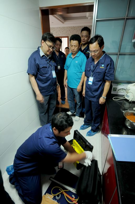 在安慶巡查的第三站——綠地迎江世紀(jì)城小區(qū),主要展示的是小區(qū)戶內(nèi)集中安檢。進(jìn)入小區(qū),映入眼簾的是一排排安檢宣傳、咨詢、安全燃?xì)饩哒故緟^(qū),宣傳展板向居民展示燃?xì)獍踩褂弥R、燃?xì)馐鹿示炯鞍踩細(xì)饩叩氖褂玫瘸WR,工作人員細(xì)致耐心的解答居民的咨詢,并發(fā)放《燃?xì)饪蛻舭踩脷馐謨浴?。陳總裁等集團(tuán)領(lǐng)導(dǎo)跟隨安檢員來到客戶家中,觀看戶內(nèi)安檢的每個(gè)環(huán)節(jié),當(dāng)安檢人員規(guī)范地完成整個(gè)安檢流程后,陳總裁給予了“很好,不亞于香港水平”的高度評價(jià)。