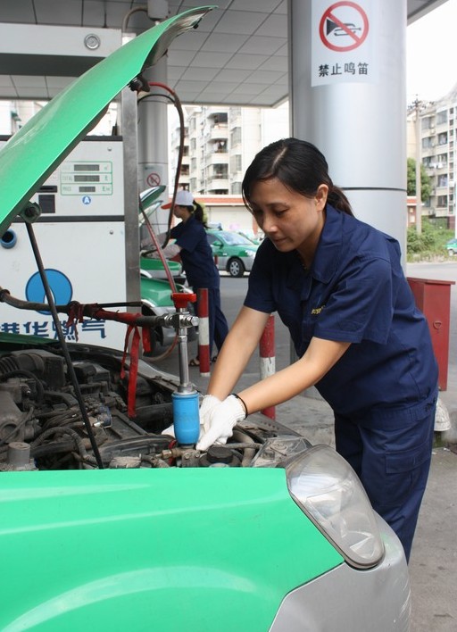 一是每天定時、定人對站區(qū)的運行設(shè)備進行巡檢、維護,做到提前排除故障,保障設(shè)備運行正常;二是充實港華路加氣崗位操作工人,確保一機一人,有效提高加氣效率;三是定期通過短信平臺向出租車駕駛員發(fā)送加氣高峰時段提示短信,每天通過站區(qū)電子顯示屏發(fā)送溫馨提示,提醒客戶錯峰、避峰,分流加氣;四是每天安排專人在現(xiàn)場對加氣車輛進行疏導(dǎo),力爭做到排隊短,等候時間少,保證了加氣秩序有條不紊。由于措施到位,有效避免了夏季高峰段加氣排長隊現(xiàn)象。